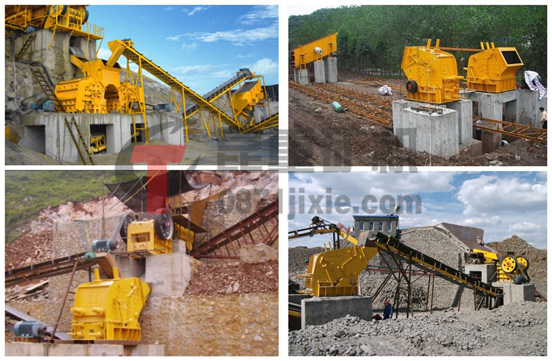 反擊式破碎機的工作原理和錘式破碎機相近,都是利用高速回轉的錘頭沖擊物料而使之破碎的,不過兩者的破碎過程卻不盡相同。當物料進入破碎腔后即受到高速回轉的板錘的沖擊而進行選擇性破碎。物料從沖擊過程中獲得巨大的動能,并以高速拋向第一級反擊板,由于反擊板的反擊作用,物料再次受到破碎,被反擊板彈回來的物料又再次受到板錘的沖擊,繼續重復上述破碎過程。之后,此破碎物料又同樣以高速被拋向第二級反擊板,進一步得到破碎。這樣,物料經過板錘、反擊板的連續多次撞擊作用以及物料之間的相簿碰撞作用,便不斷沿自身的節理面產生裂縫、松散而被破碎。其力度小于板錘和反擊板之間的縫隙時,就從機器下部排出成為合格產品。在砂石廠聯破作業一般配置在顎式破碎機后面。